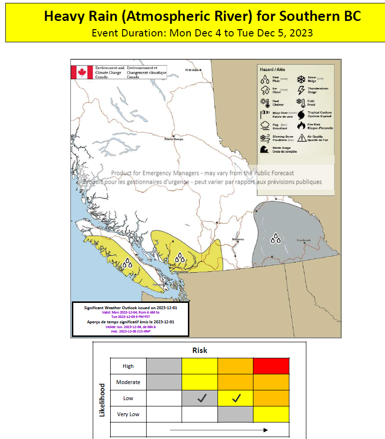 Atmospheric River Special Weather Statement and Astronomical Tide Advisory