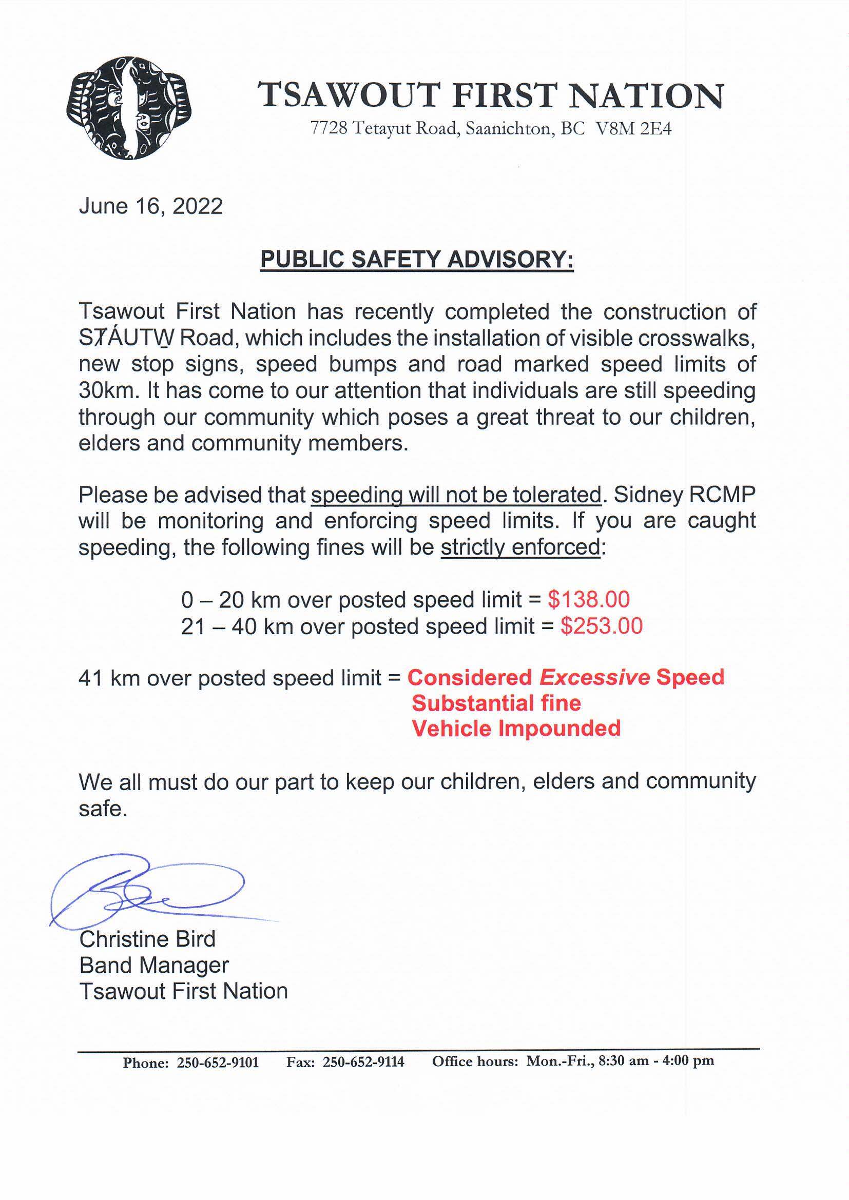 Public Safety Advisory Community News, Featured Public Safety Advisory PUBLIC SAFETY ADVISORY - SPEEDING SȾÁUTW̱ First Nation Read More