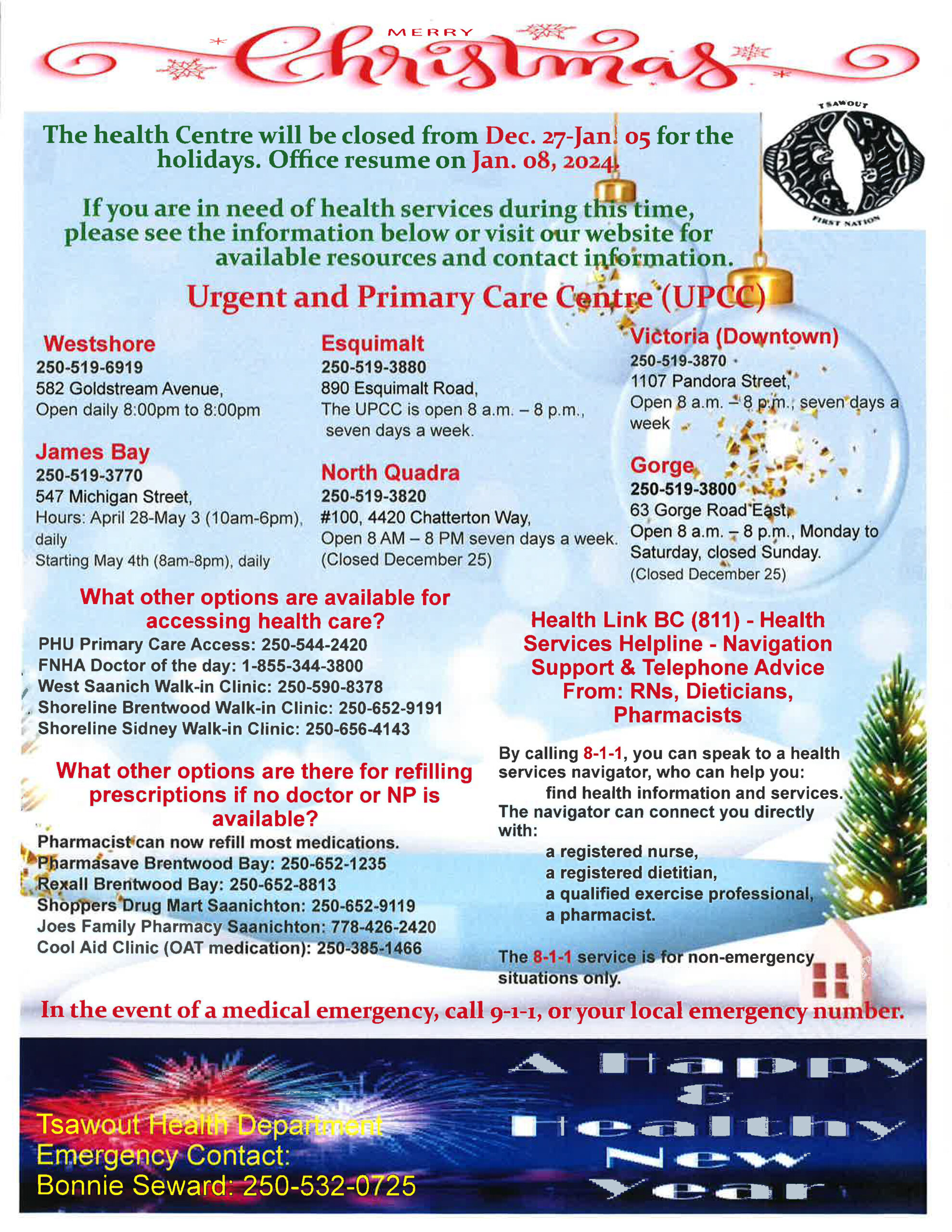 Important Phone Numbers - Primary Urgent Care Centre Contact Info