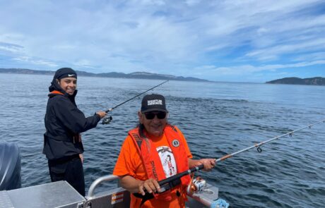 We have prioritized developing skills and procuring fishing equipment within the Nation to provide opportunities for community to get out on the water. Training community members to fish for themselves is a core part of Food Sovereignty and our programming. Teaching youth, families, and those reconnecting to their roots helps restore skills that have always been central to community wellbeing. Through this programming we want to encourage knowledge transfer between generations and create opportunities to learn from community fishers.